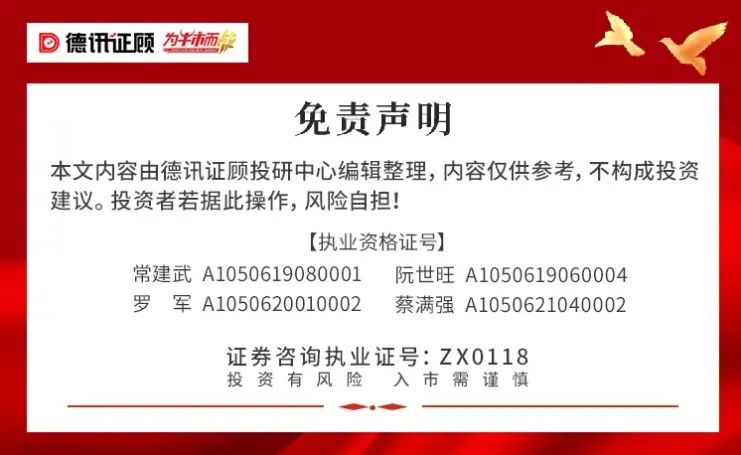 本文观点由德讯证顾投研团队:周建魁(执业编号:A1050619120001)、蔡满强(执业编号:A1050621040002)、朱小飞(执业编号:A1050621070003),编辑整理,文章内容仅供参考,不构成投资建议!