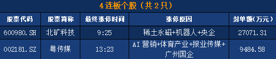 1、截至收市,涨停个股74只,跌停个股5只。涨停个股数较前一交易日增加,跌停个股较前一交易日减少,市场情绪热度上升。