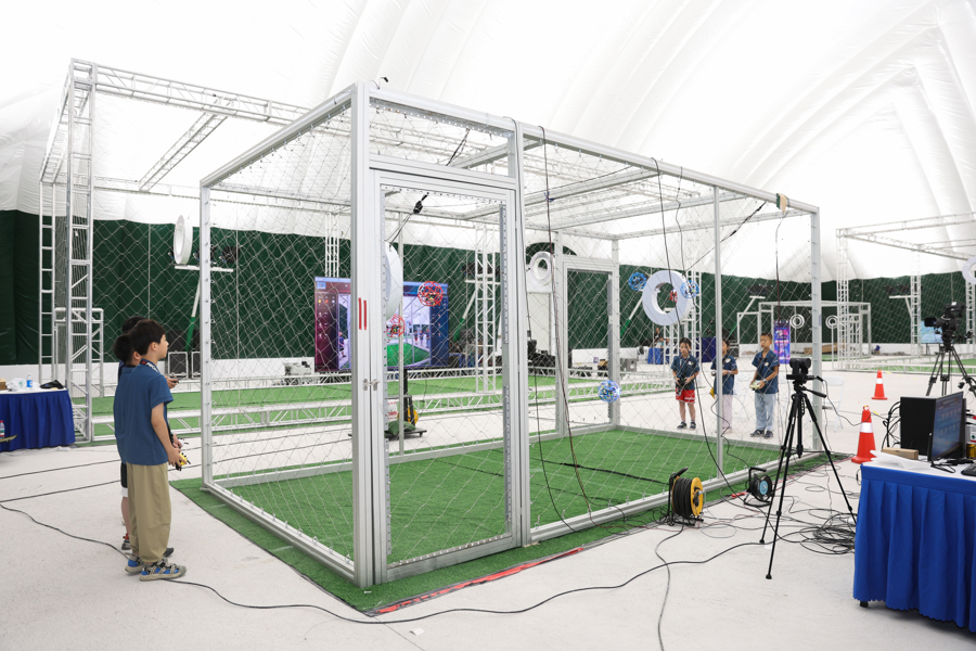 无人机足球巧妙融合了无人机技术与传统足球运动的精髓。比赛在一个巨型安全围网内展开,场地两端各悬挂一个环形球门。根据比赛组别不同,每队派出三名或五名选手上场,操作经过特殊设计、包裹在球形保护罩内的无人机;其中一架被标记为本方的“足球”,需操纵它穿越对方球门方能得分;与此同时,队友们则负责防守,通过战术性的碰撞与拦截,尽力阻挡对手的“足球”逼近己方球门。这项新兴的科技体育运动不仅考验选手的手眼协调能力与团队协作能力,更是创新教育及青少年接触前沿科技的良好平台。